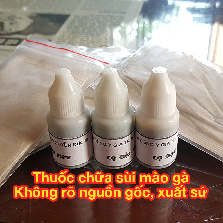 Hầu hết các loại thuốc chữa sùi mào gà được rao bán trên mạng đều gắn mác “gia truyền”, “đặc trị”. Khi liên hệ hỏi mua và xin thông tin về thành phần thuốc đều nhận lại một câu trả lời chung chung: Bài thuốc gia truyền nên không thể tiết lộ. Như vậy khi sử dụng các loại thuốc này, chúng ta hoàn toàn không biết mình đã đưa những gì vào trong cơ thể.