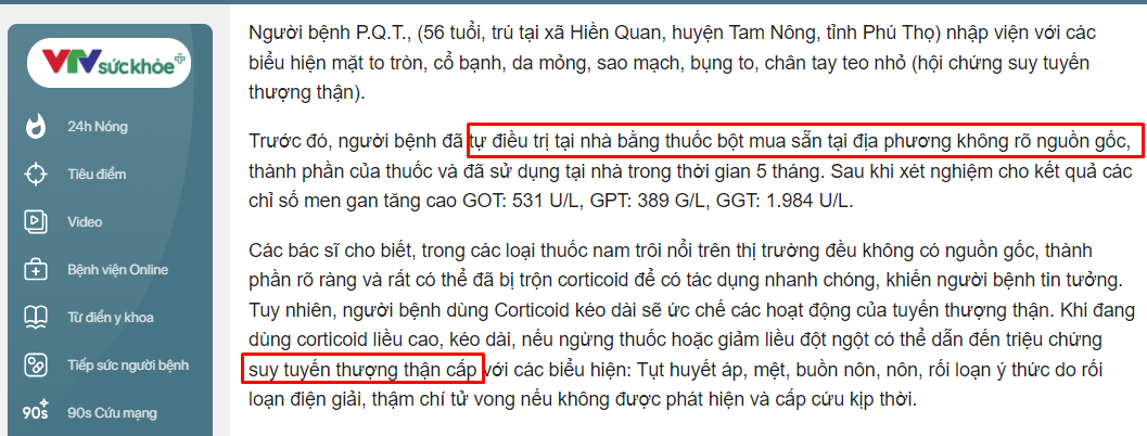 Các loại thuốc này khi uống vào có thể gây tổn hại đến gan, thận. Nếu dùng bôi ngoài da sẽ gây nhiễm trùng, tổn thương vùng kín, ăn mòn da, viêm loét da…