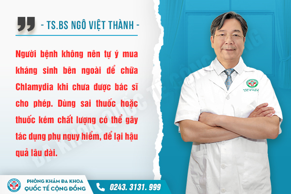 Vì vậy, bác sĩ Thành khuyến cáo người bệnh không nên tự ý chữa trị Chlamydia tại nhà sẽ dẫn đến hậu quả nguy hiểm khó lường. Nếu bệnh đang ở giai đoạn nhẹ, bác sĩ sẽ kê đơn kháng sinh phù hợp và theo dõi sát sao quá trình để đảm bảo điều trị an toàn và hiệu quả.