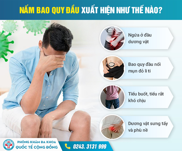 Nấm dương vật do nấm candida phát triển gây bệnh tại bao quy đầu, rãnh quy đầu, các nếp gấp dương vật…Các triệu chứng nhiễm nấm dương vật bao gồm: