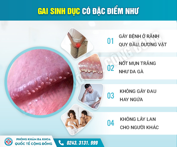 - Gai sinh dục hình thành do sự tăng sinh quá mức của tế bào vùng thượng bì khiến chúng nổi hẳn lên bề mặt da ở dương vật nam giới.